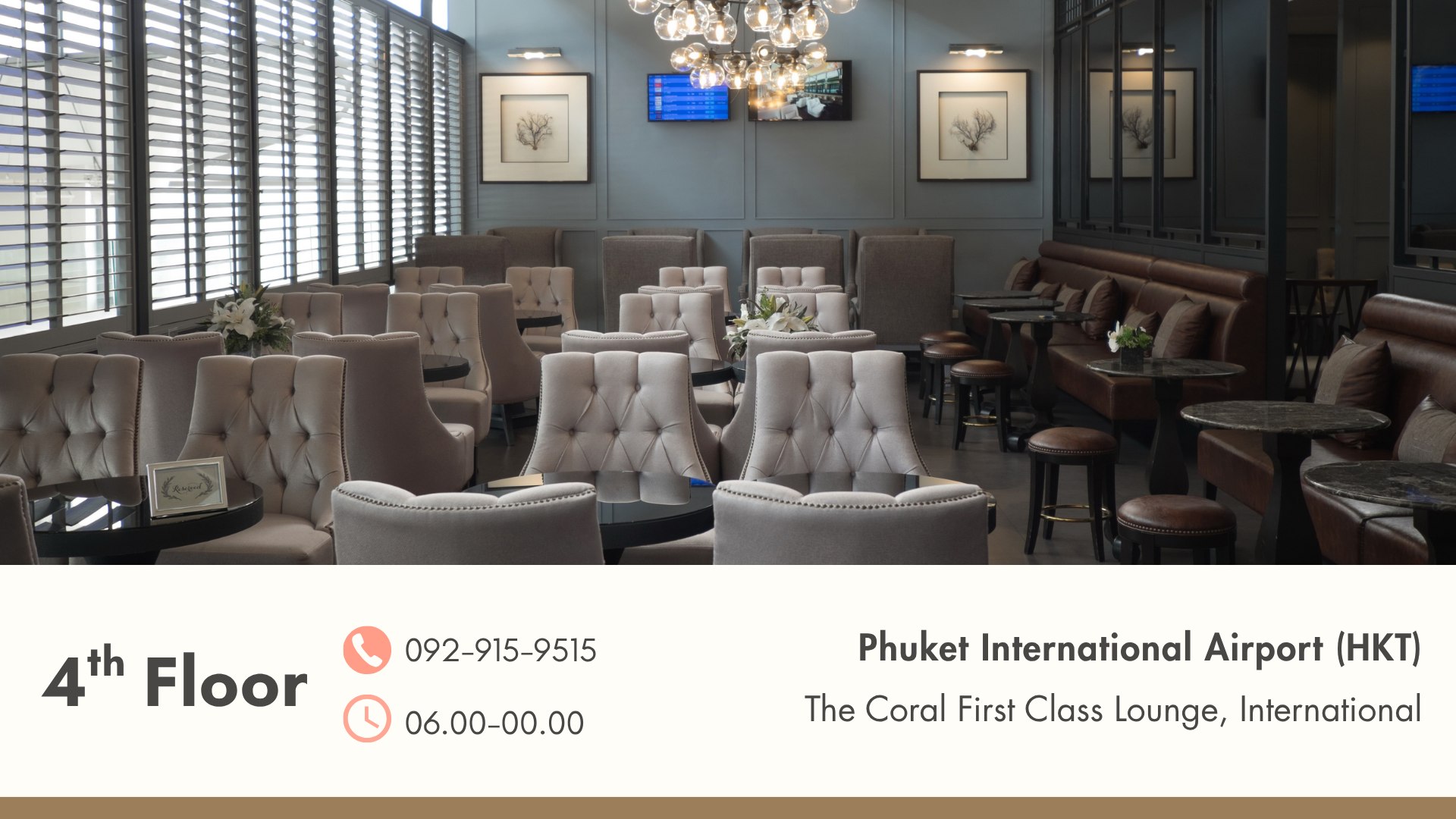 - Coral First Class International Departure Lounge, Phuket International Airport (HKT)
