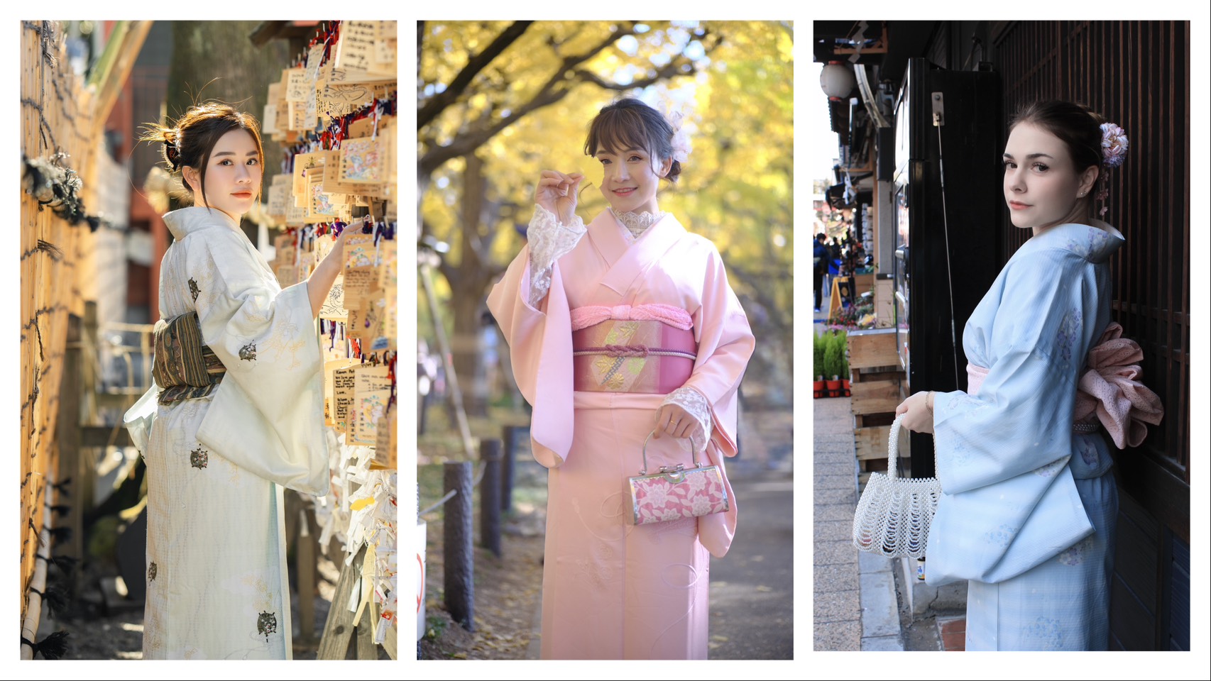 - The package includes: Women's and men's premium kimono rental, Furisode rental (long-sleeved kimono), Homongi rental (formal visiting kimono), handbag rental, sock rental, shoe rental, obi belt rental, full kimono set (Nagajuban undergarment, tabi socks, geta sandals, hanhaba obi, etc.), basic hairstyle design and hair accessories, and kimono dressing accessories.