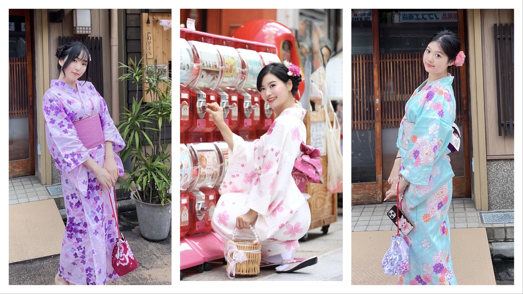 - Package includes: Basic kimono and yukata rental for women, men, and children, handbag rental, sock rental, shoe rental, belt rental, full kimono set (naga-juban, tabi socks, geta sandals, half-width obi, etc.), basic hairstyle design and hair accessories, and kimono dressing accessories.
