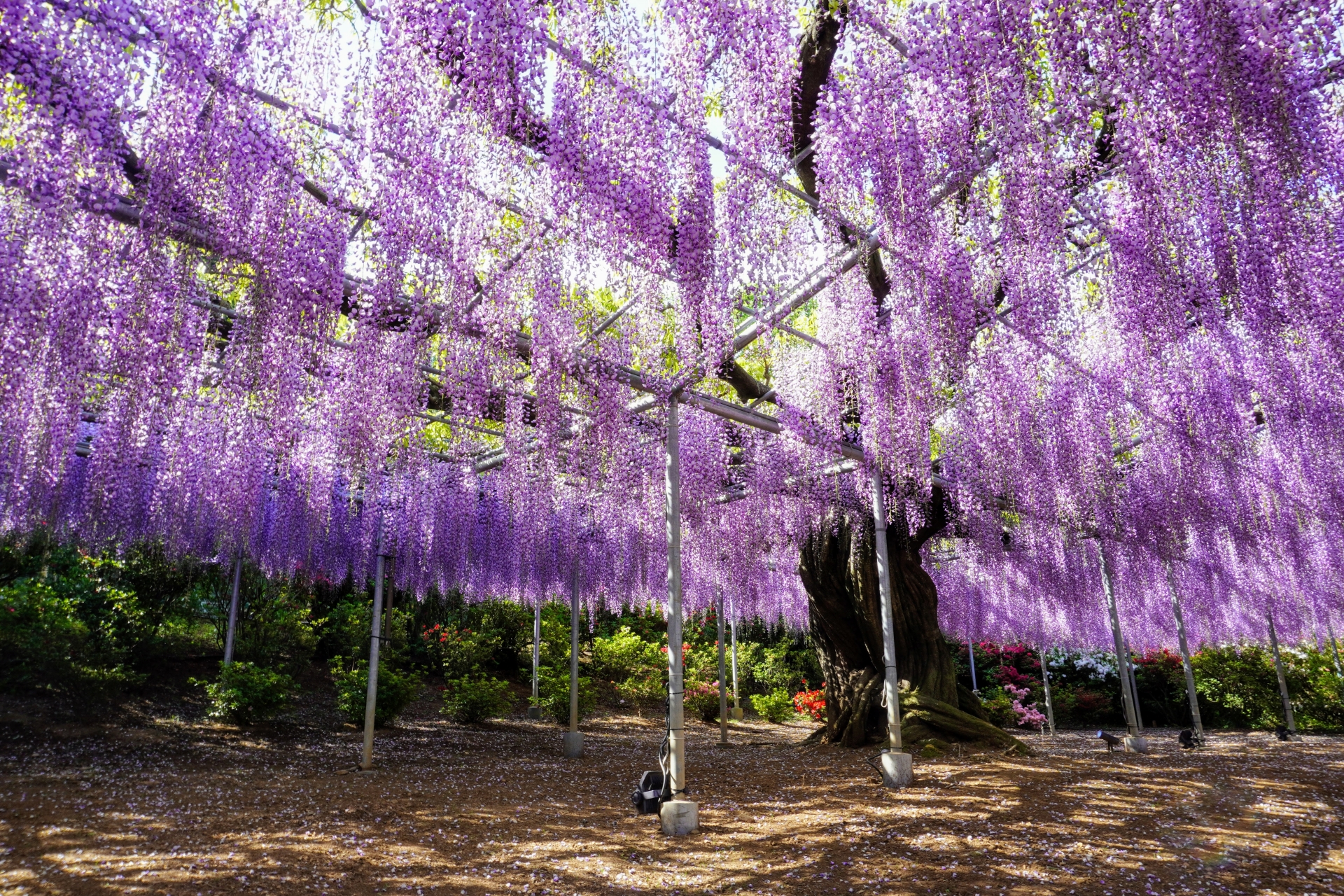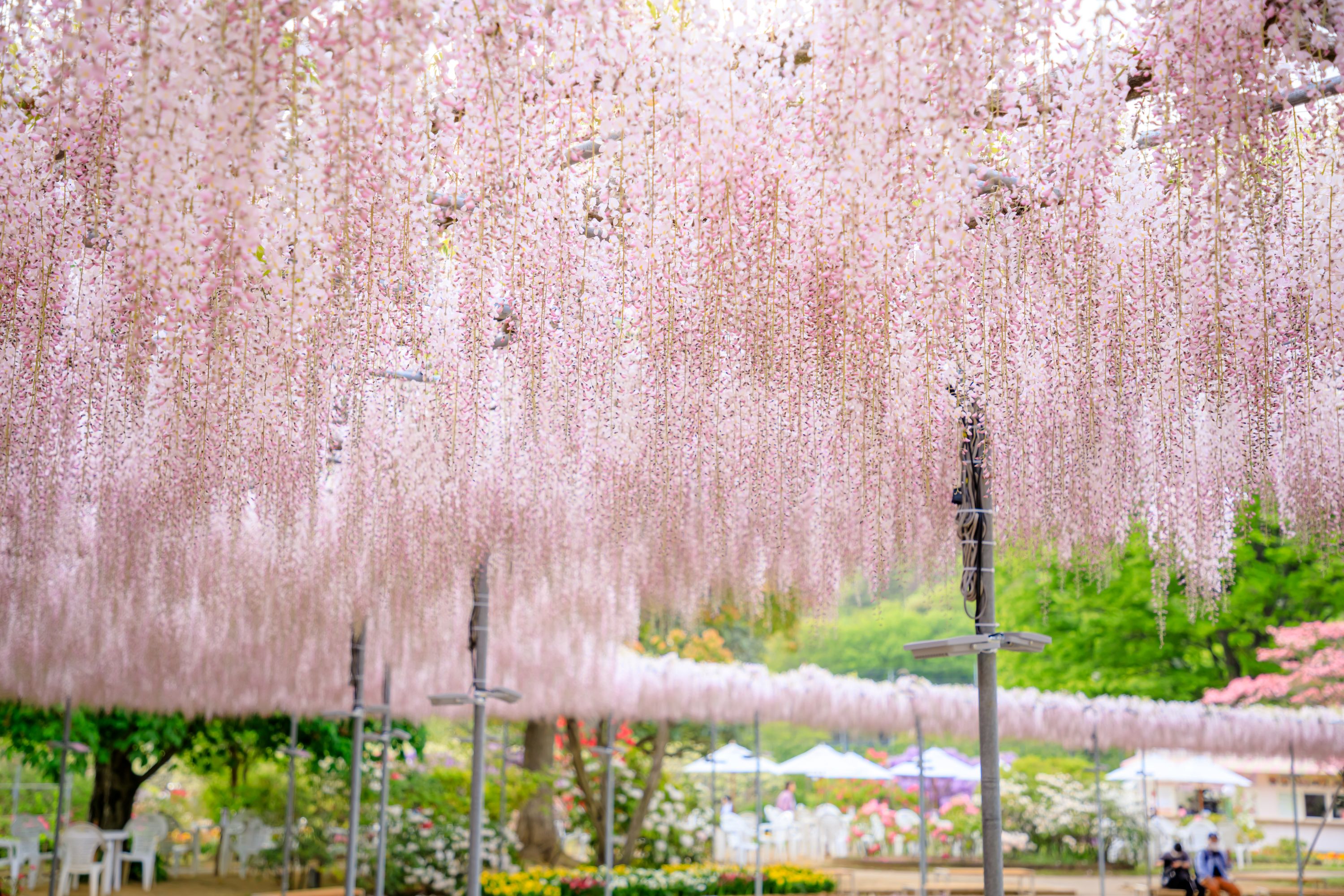 • [Attraction/experience] 14:40, 1 hour(s) 50 min(s), Ashikaga Flower Park, From mid-April to May, walk beneath the swaying wisteria curtains and immerse yourself in the dreamy floral scent.