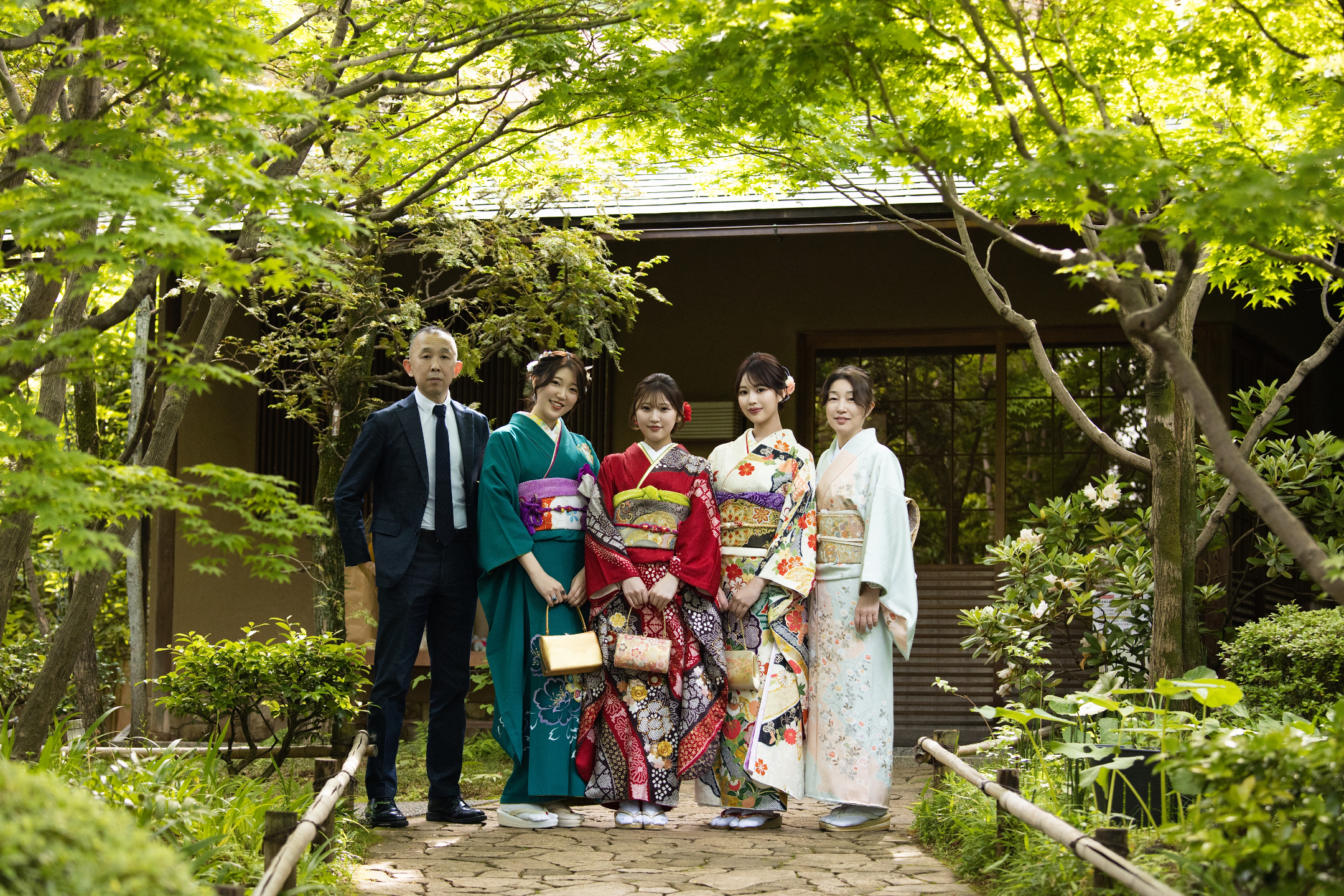 - Kimono dresser (着付け師) accompanying throughout the shoot