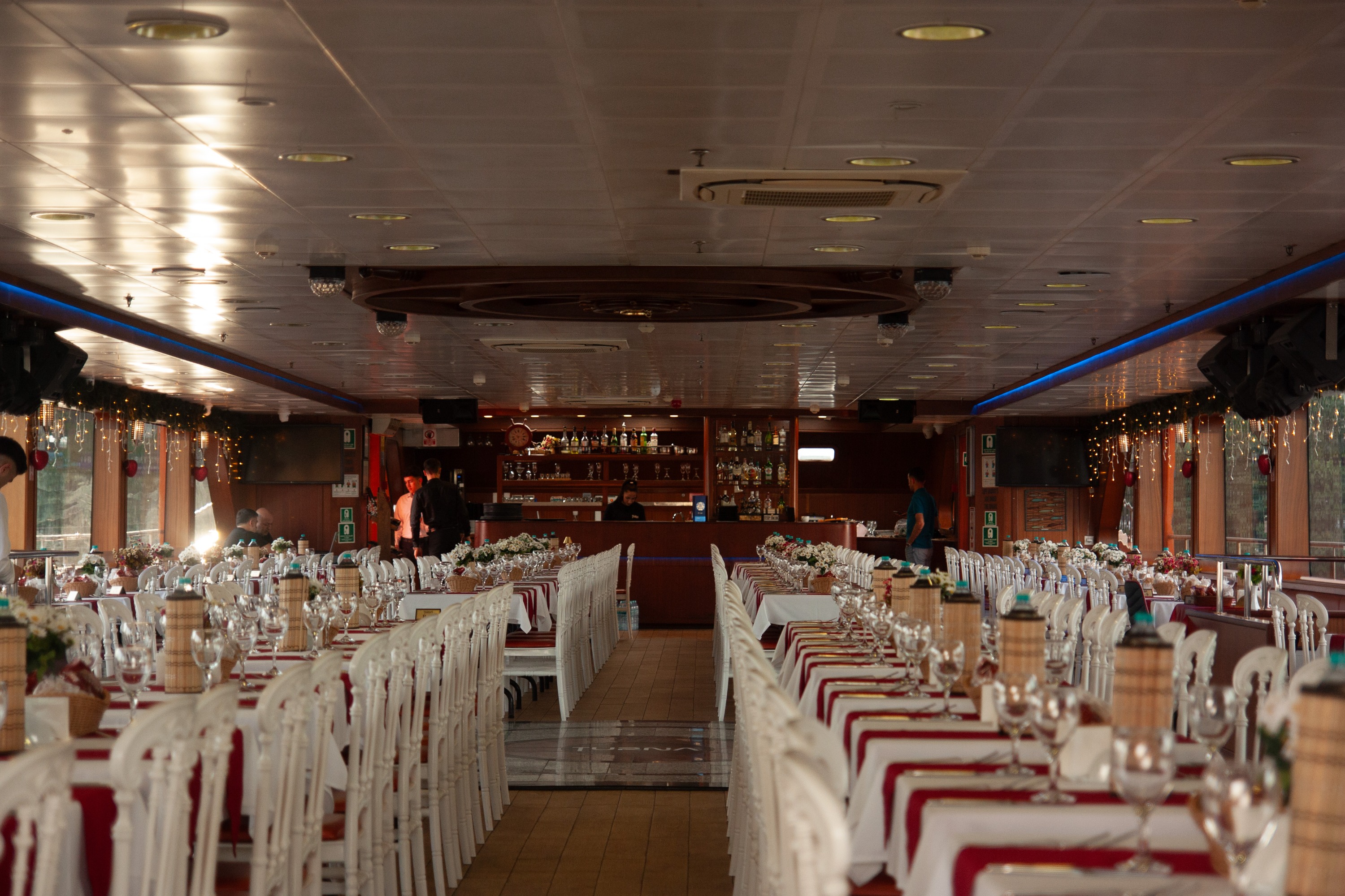 - Unlimited soft drinks; Unlimited Alcoholic Drinks; Hors d’ouvres plate; cheese platter; hot appetizers; 5 Salad Options: Season Salad; Chicken Caesar Salad; Greek Salad; Salad of Life (shrimp); Queen Salad; 10 Main Course options: Grilled Fish of the Day; Grilled Salmon; Beef Steak; Mixed Grill; Meatballs; Shepherd’s Stew; Grilled Chicken; Chicken with Curry Sauce; Chicken with Creamy Mushrooms; Falafel (vegan); Turkish walnut baklava in winter and fruit platter in summer