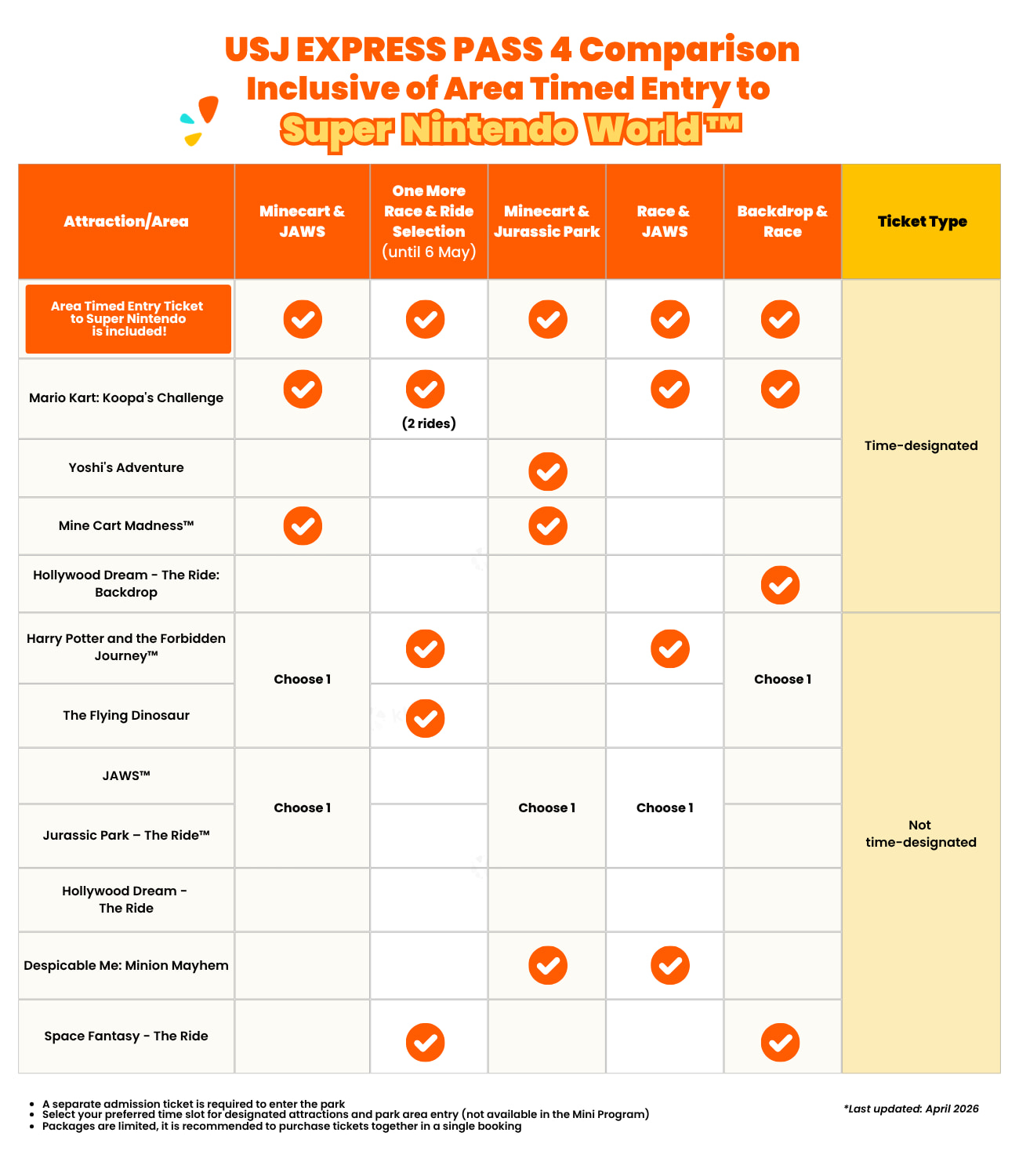 Express Pass prices and available time slots vary by date. Check the available options during unit selection (app) or at checkout page (web)
