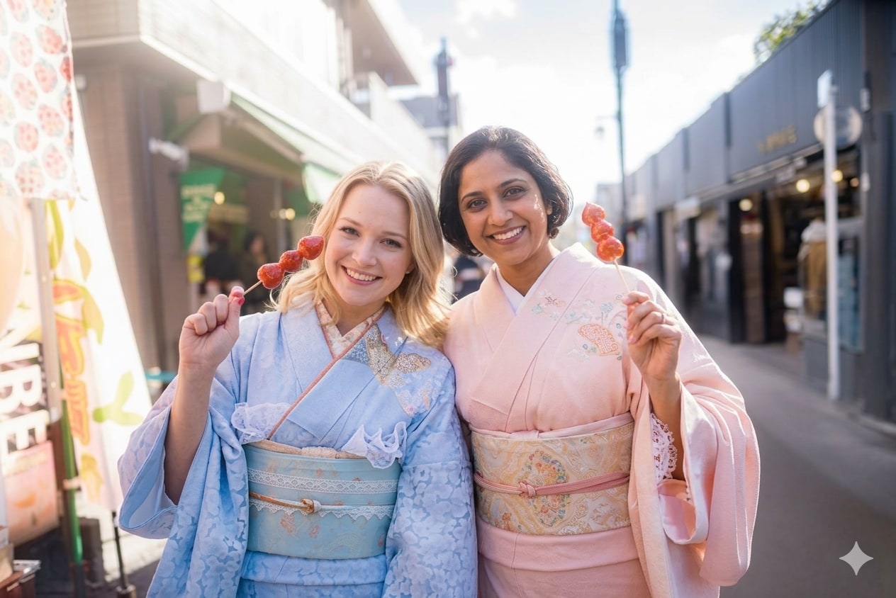 - For Women (Deluxe) : Complete yukata set (select from the Retro Premium rank including VASARA original yukata), includes 3 optional items (such as lace, hair accessories, or jewelry), and Two-Star rank hair styling.