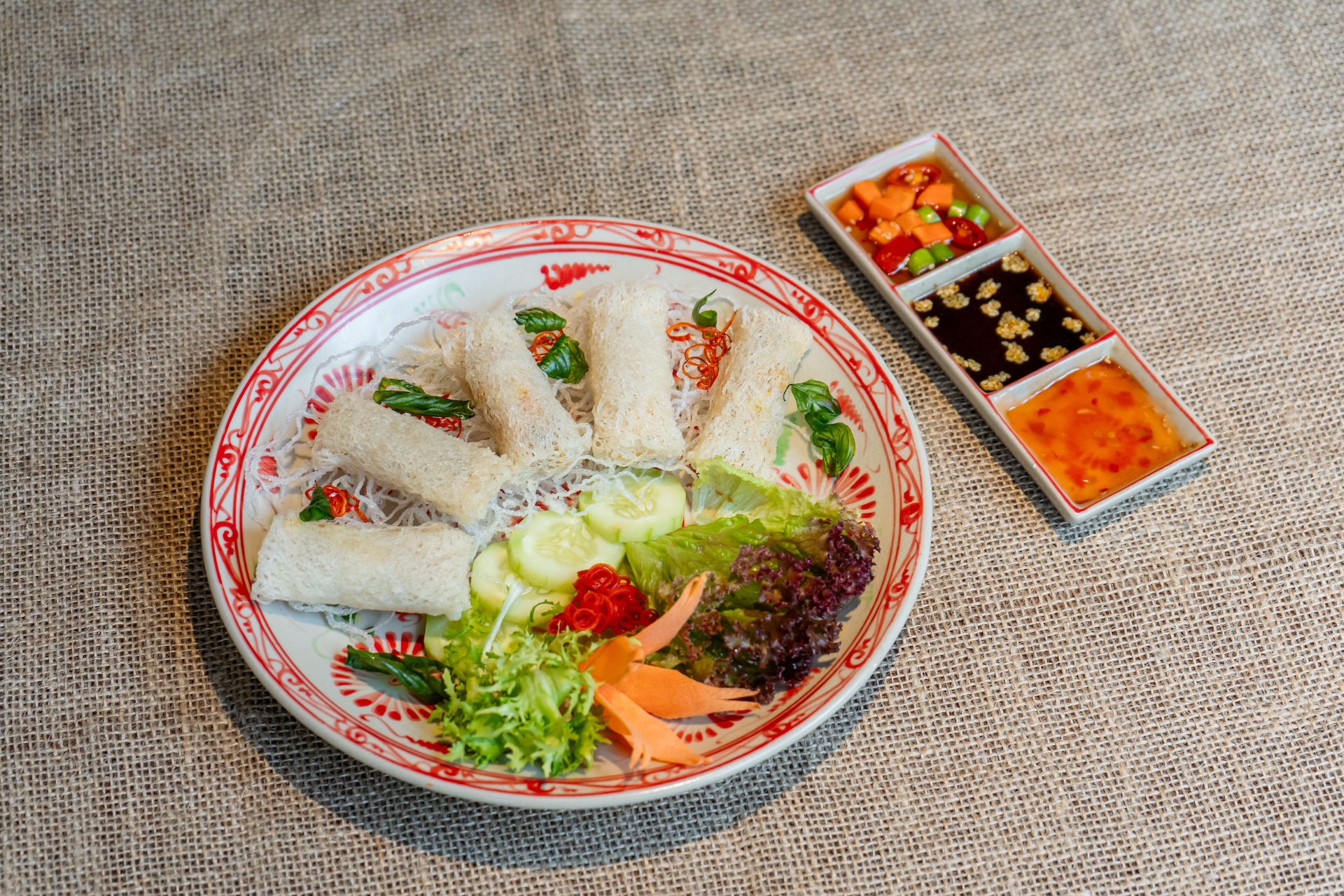 - Vegetarian menu: Vegetarian fresh hand rolls, Deep - fried vegetables spring rolls, Quang - style noodles