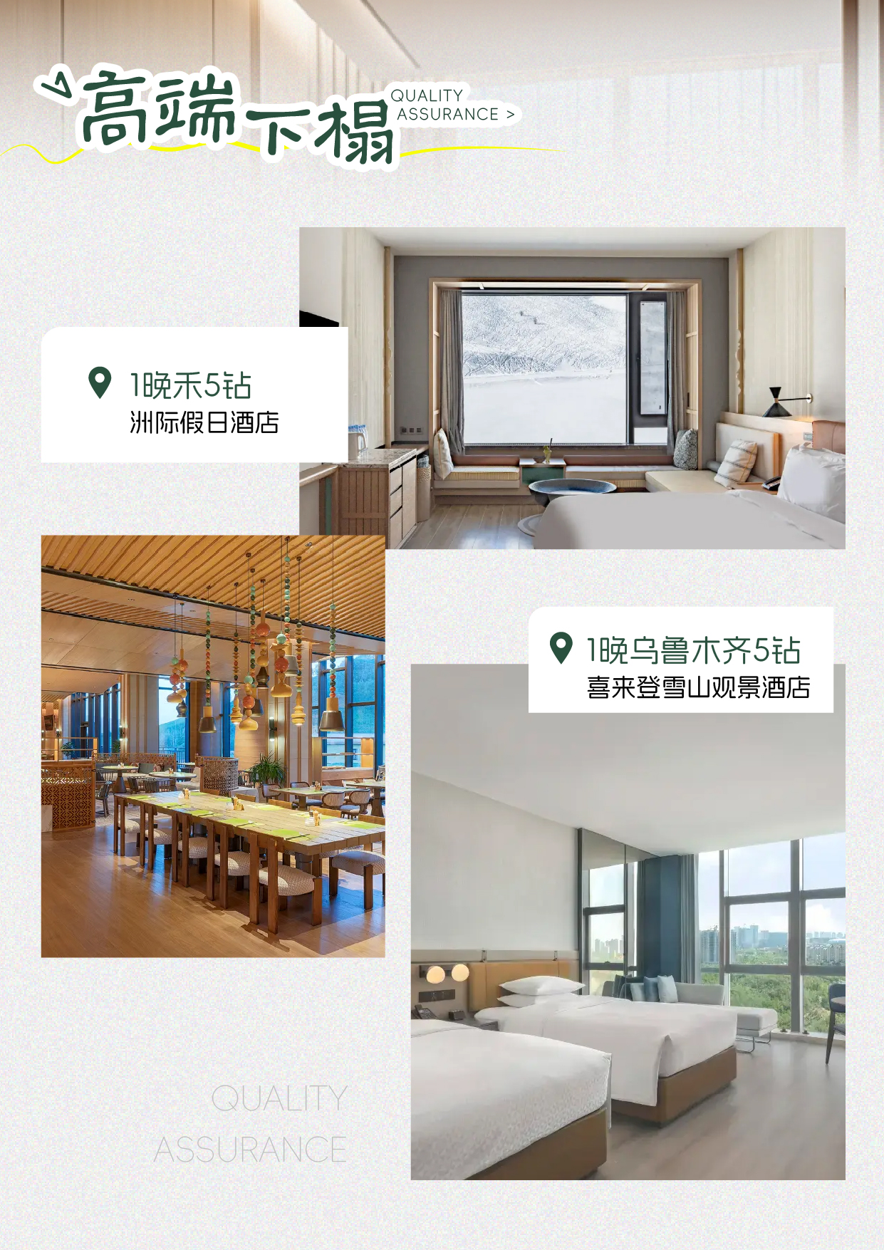 - [Accommodation] Urumqi West Hotel; Hotels of the same class as those listed above, such as Urumqi Shangrong Hotel, Urumqi Sunshine Hotel, Urumqi Green Oriental Hotel, Urumqi Qiaogeli Hotel, Urumqi Orchid Garden Hotel, Urumqi Wild Horse Silk Road Post Cultural Theme Salon, and Urumqi Furama Hotel, are not designated hotels.