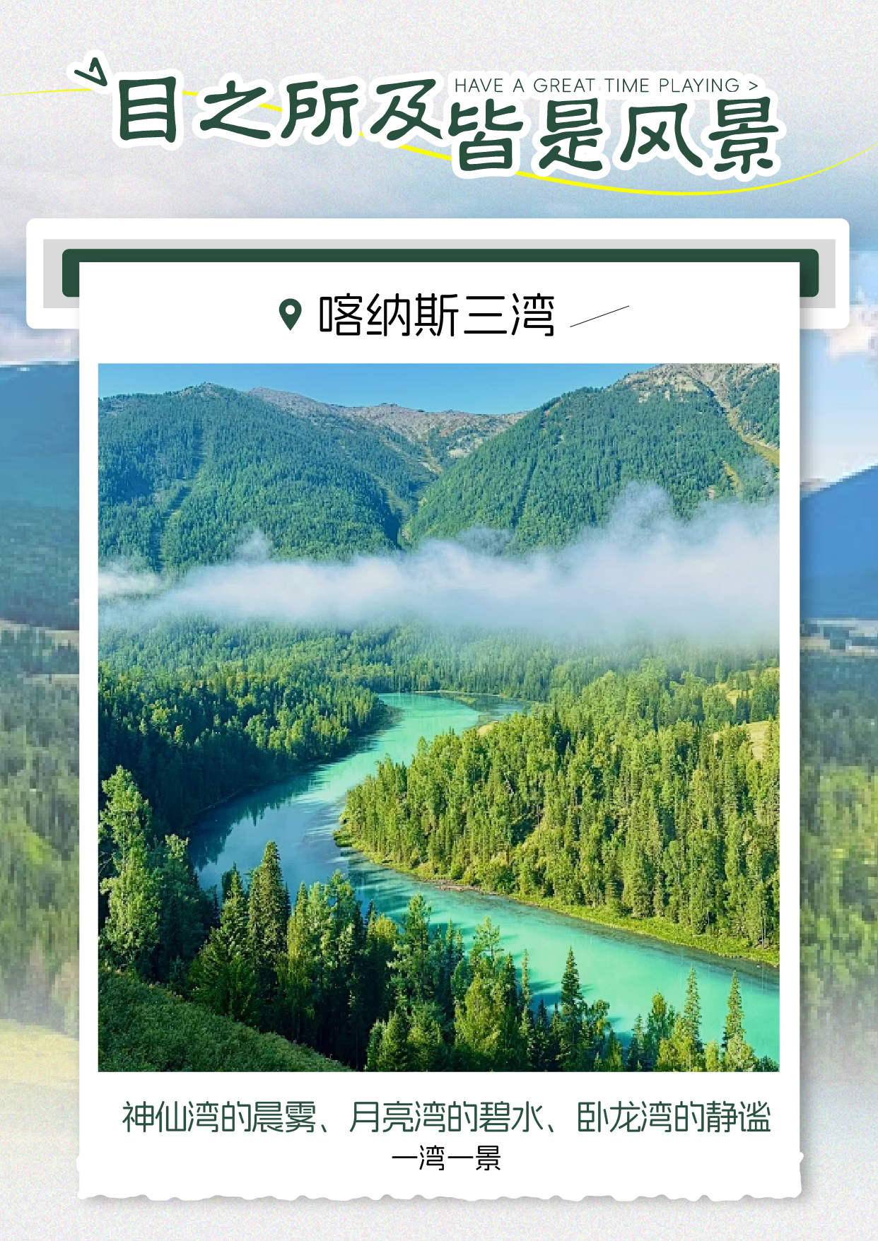 - [Attraction/experience] 2 hour(s), Self-guided, Kanas Three Bays, Today, I visited the three bays of Kanas: Moon Bay, Wolong Bay, and Shenxian Bay.