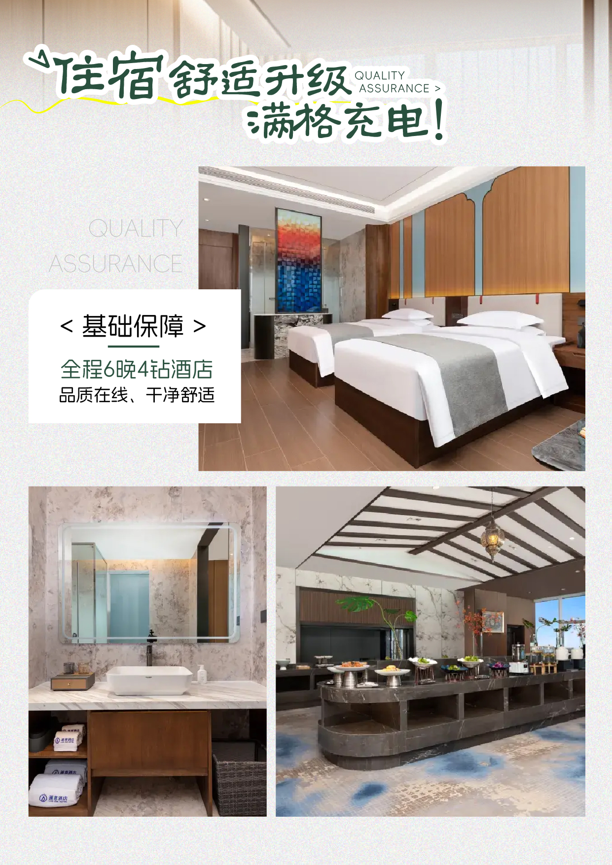 - Accommodation: 2 nights in a 4-star online rated hotel + 1 night in a scenic area hotel (Hemujia) + 6 nights in a 3-star online rated hotel. All hotels listed in the itinerary are reference hotels. During the peak tourist season in Xinjiang, the actual booked hotels will prevail without lowering the accommodation standard.