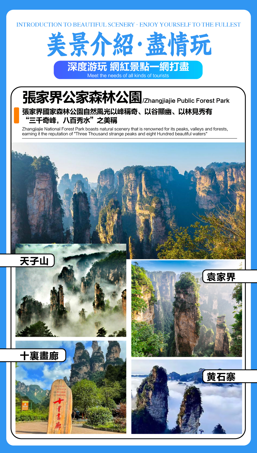 - [Attraction/experience] Zhangjiajie National Forest Park, Bailong Elevator, Tianzi Mountain, Ten-Mile Gallery, Yuanjiajie