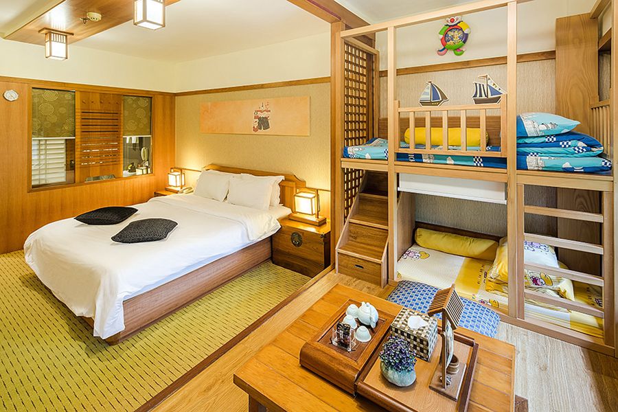 - Children's Fun Room: 1 180*200cm Chinese-style large bed + children's bunk bed (top 1.45 meters, bottom 1.2 meters, width 0.85 meters), one 0.95 tatami can be added for an additional fee