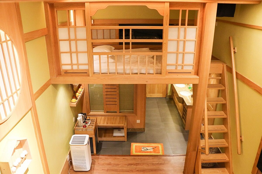 - **changzhuang-Room (Double-Sided Loft):** 1 large 1.8-meter tatami mat (by the window) + 1 large 1.5-meter tatami mat (against the wall). Note: The bed arrangement is the same for 2-4 people: 1 large 1.8-meter tatami mat (by the window) + 1 large 1.5-meter tatami mat (against the wall). Maximum occupancy: 8 people.